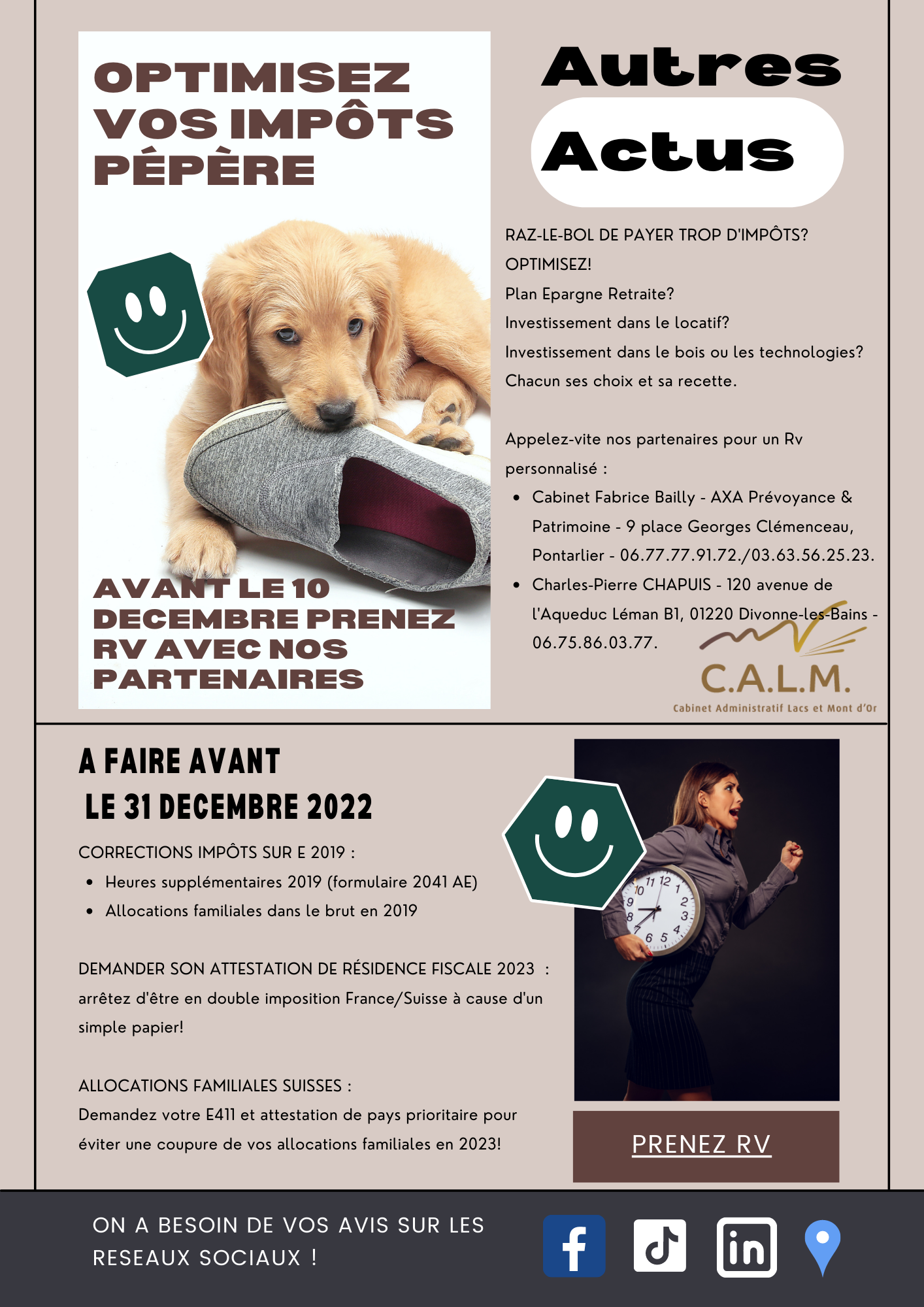 Nos RV comprennent une mise à jour des acomptes 2025.